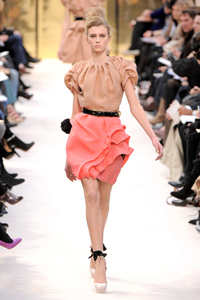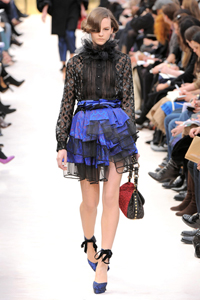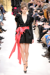 Dantela fina acopera rochiile mini din matase sau tafta si completeaza in mod armonios tinutele cu pantaloni din piele trei sferturi sau fuste conice. Negrul este secondat de accente de culoare, fuchsia, albastru electric sau topaz, in special atunci cand vorbim despre accesorii: esarfe lungi prinse in talie, funde din matase atasate taioarelor, manusi fara degete care urca spre cot.
